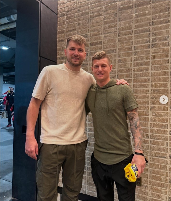 2月26日訊 在個(gè)人社媒,克羅斯曬出與NBA球星東契奇的合影。德國足壇傳奇球星克羅斯近期在美國觀(guān)看多場(chǎng)NBA比賽,他此前觀(guān)看了勇士vs獨行俠的比賽,今天又前往洛杉磯觀(guān)看湖人vs獨行俠的比賽。在個(gè)人社媒