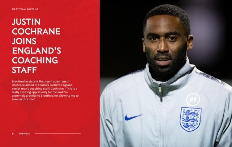 2月26日訊 布倫特福德官網(wǎng)消息,俱樂(lè )部一線(xiàn)隊助理教練賈斯汀-科克倫加入圖赫爾的英格蘭男足一線(xiàn)隊教練組??瓶藗悓⒗^續擔任布倫特福德一線(xiàn)隊助理教練,他自2022年7月以來(lái)一直擔任這一職位,將以雙重身份
