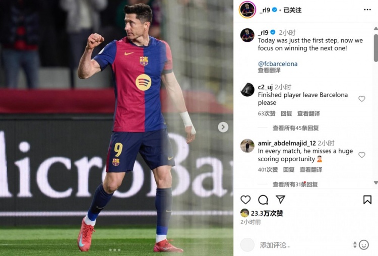 2月26日訊 在國王杯半決賽首回合,巴薩4-4戰平馬競。本場(chǎng)比賽萊萬(wàn)替補登場(chǎng)打進(jìn)一球,賽后他也在個(gè)人社媒曬出本場(chǎng)慶祝進(jìn)球照片,配文寫(xiě)道:“今天的比賽只是第一回合,現在我們專(zhuān)注于贏(yíng)下下一回合!”