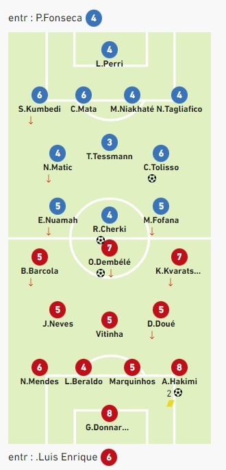 2月24日訊 今天凌晨, 巴黎圣日耳曼在法甲客場(chǎng)3-2擊敗里昂,《隊報》為兩隊球員進(jìn)行了評分。里昂評分:主帥:豐塞卡4分門(mén)將:佩利4分后衛:昆貝迪6分、克靈頓-馬塔6分、尼亞哈特4分、塔利亞菲科4分中