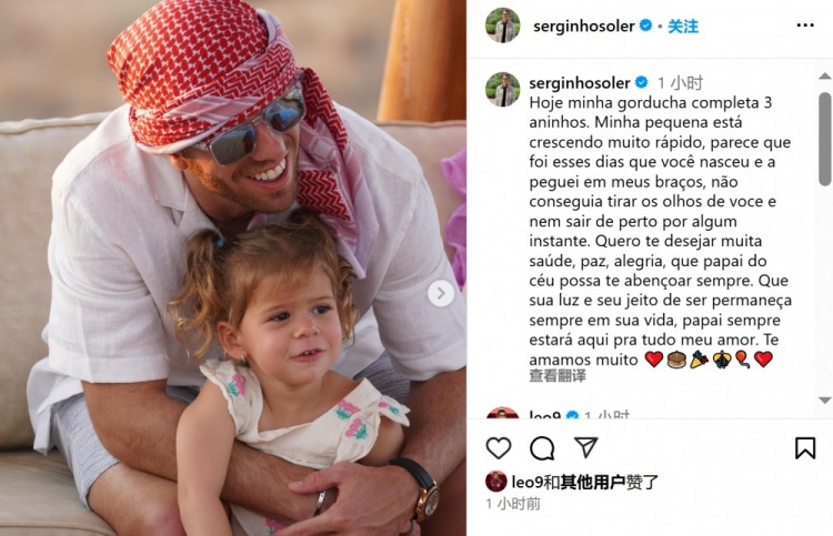 2月24日訊 國安中場(chǎng)塞爾吉尼奧更新社媒,他為三歲的女兒送上生日祝福。塞爾吉尼奧社媒今天我的小胖妞滿(mǎn)三歲了。我的小寶貝長(cháng)得太快了,仿佛就在前幾天,你剛出生時(shí)我把你抱在懷里,那時(shí)我就無(wú)法把目光從你身上移