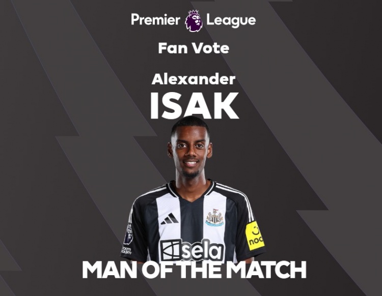 梅開(kāi)二度!英超官方:伊薩克當選紐卡4-3森林球迷票選全場(chǎng)最佳