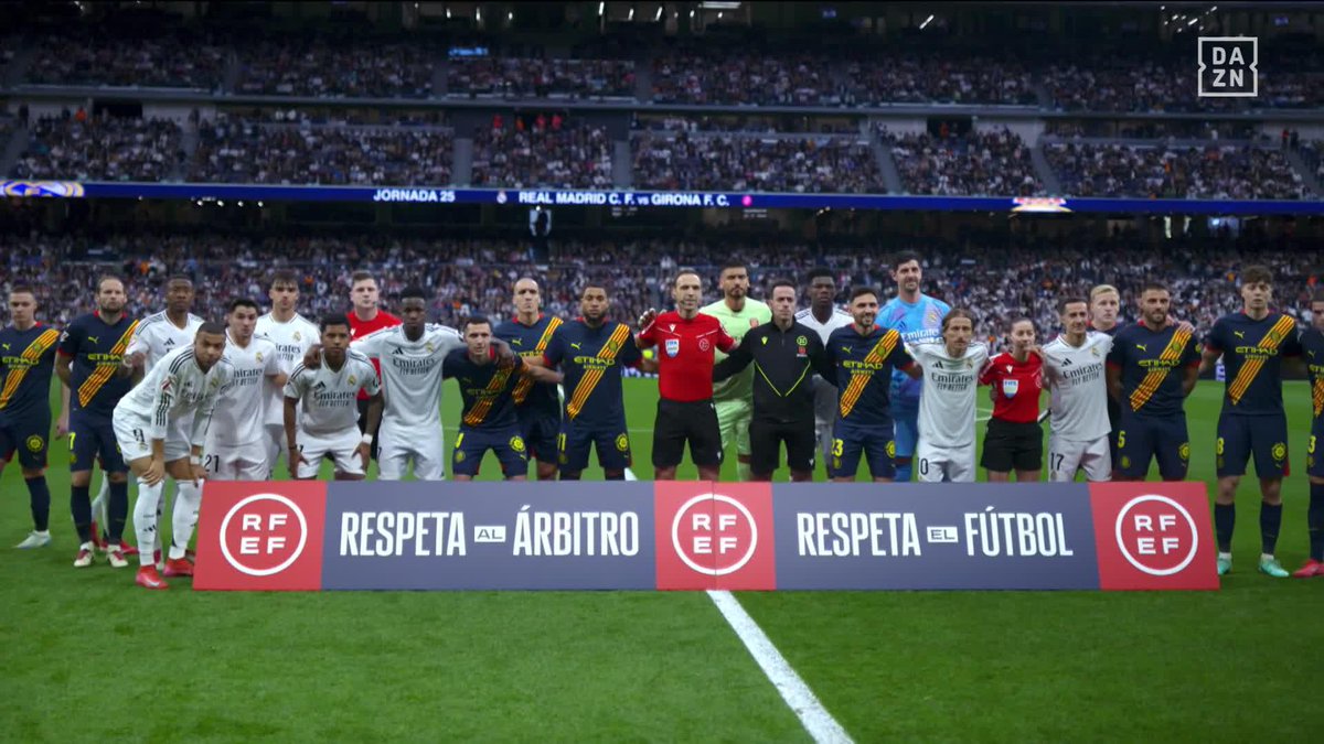 皇馬、赫羅納在“尊重裁判、尊重足球”標語(yǔ)前合影,球迷爆發(fā)噓聲