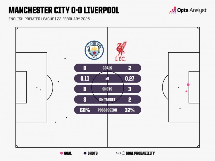 曼城0-2利物浦數據:控球率66%-34%,射門(mén)16-8,射正5-4