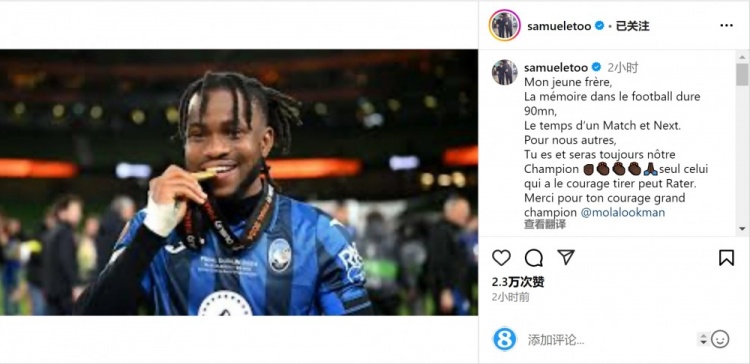 埃托奧鼓勵盧克曼:你永遠是冠軍,有勇氣射門(mén)的人才可能射偏