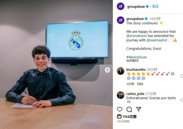 2月21日訊 官方消息,皇馬名宿馬塞洛15歲的兒子恩佐和皇馬完成了新合同續約。恩佐出生在2009年,他在2017年加盟皇馬青訓體系,目前效力于皇馬U17,他的場(chǎng)上位置是中鋒。