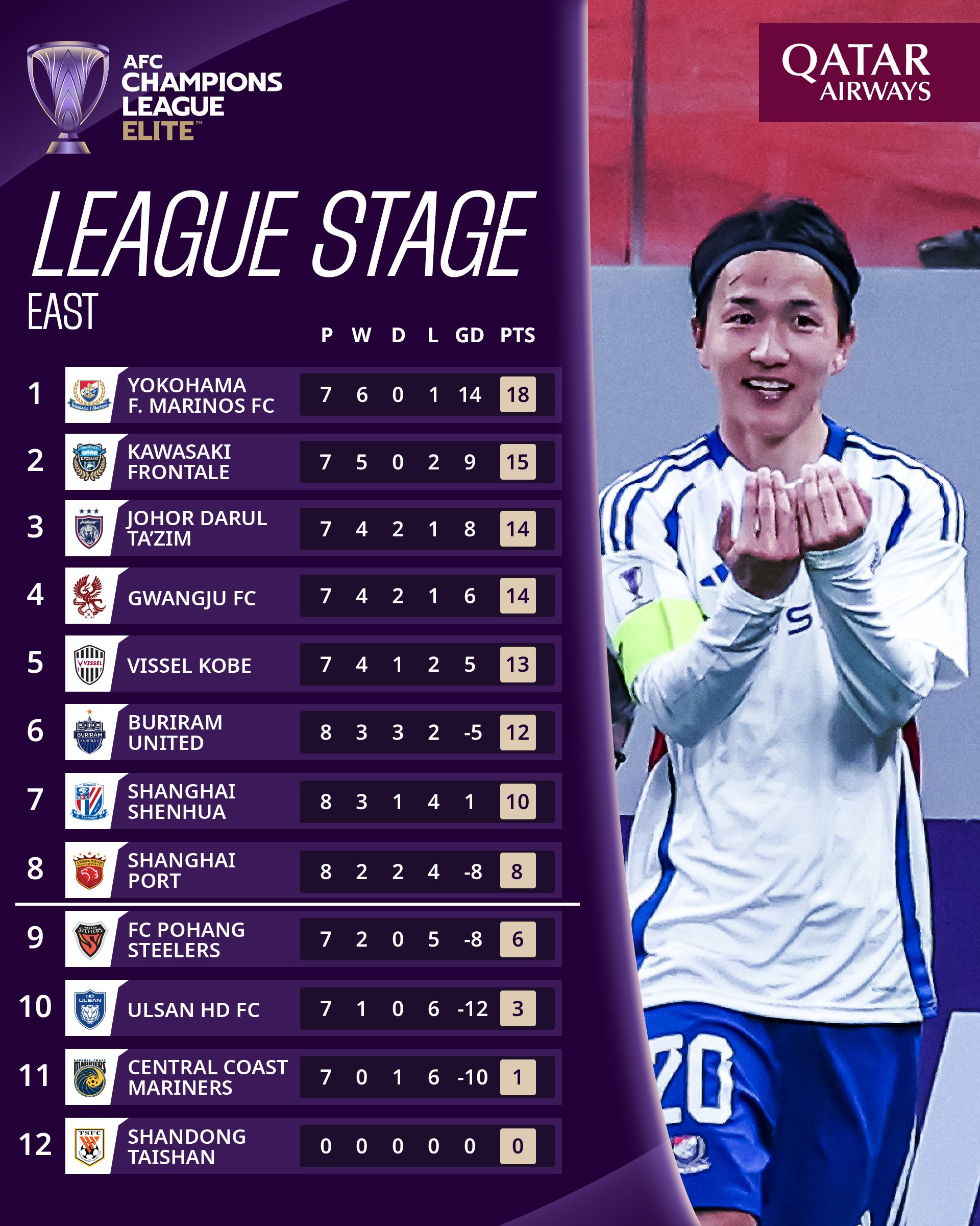 02月21日訊 亞冠官方公布了亞冠精英聯(lián)賽東西亞區積分榜。在亞冠官推曬出的積分榜中,山東泰山戰績(jì)清零,中超球隊海港、申花晉級。