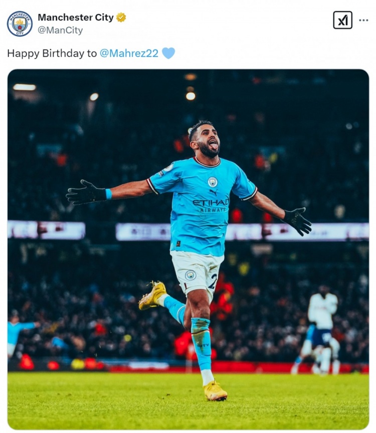 2月21日訊 今天是阿爾及利亞邊鋒馬赫雷斯的34歲生日,老東家曼城為他送上祝福。曼城官方社媒曬出馬赫雷斯效力球隊時(shí)期的照片,配文:“祝馬赫雷斯生日快樂(lè )?!瘪R赫雷斯2018年到2023年期間效力曼城,為