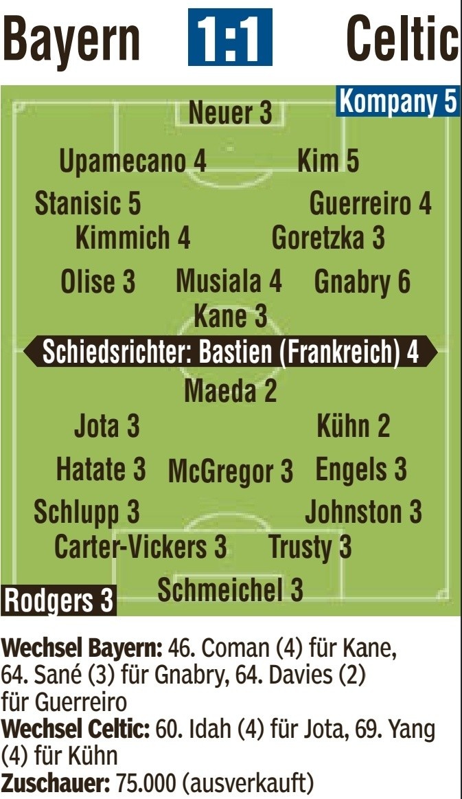 拜仁vs凱爾特人圖片報評分:戴維斯2分最高,格納布里6分最低