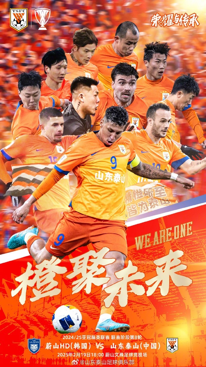 亞冠精英聯(lián)賽第八輪????蔚山HDVS山東泰山?2025.2.19(周三)18:00????蔚山文殊足球競技場(chǎng)????愛(ài)奇藝、咪咕視頻 ???