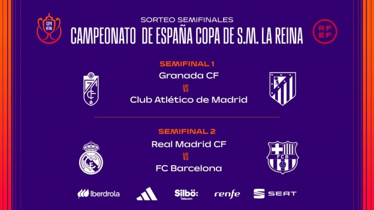皇后杯4強抽簽:皇馬女足vs巴薩女足,格拉納達女足vs馬競女足