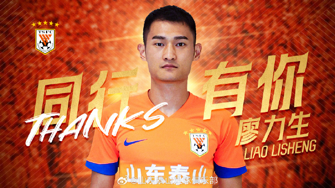 感謝廖力生為山東泰山所做的貢獻,愿你在未來(lái)的足球生涯繼續閃耀