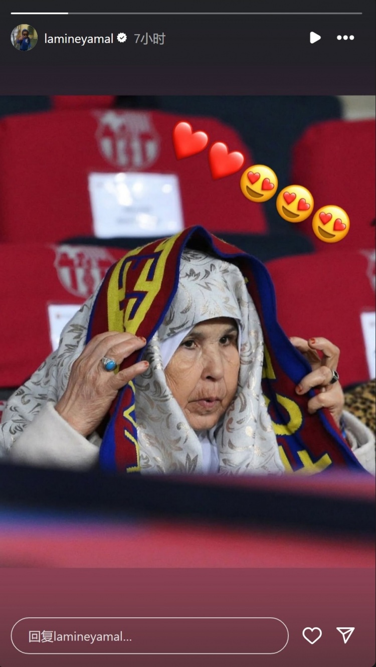 2月18日訊 在北京時(shí)間今天凌晨進(jìn)行的西甲第24輪比賽中,巴薩主場(chǎng)1-0擊敗巴列卡諾,重回西甲榜首。亞馬爾的祖母來(lái)到現場(chǎng)觀(guān)看比賽,亞馬爾在社交媒體上曬出祖母的照片,并配上了紅心表情符號。根據《每日體育