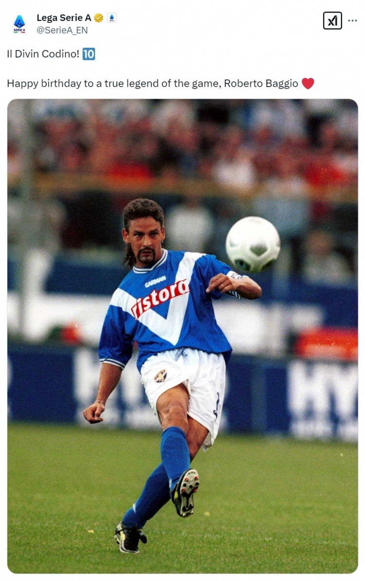 意甲官方社媒祝巴喬58歲生日快樂(lè ):真正的足壇傳奇!