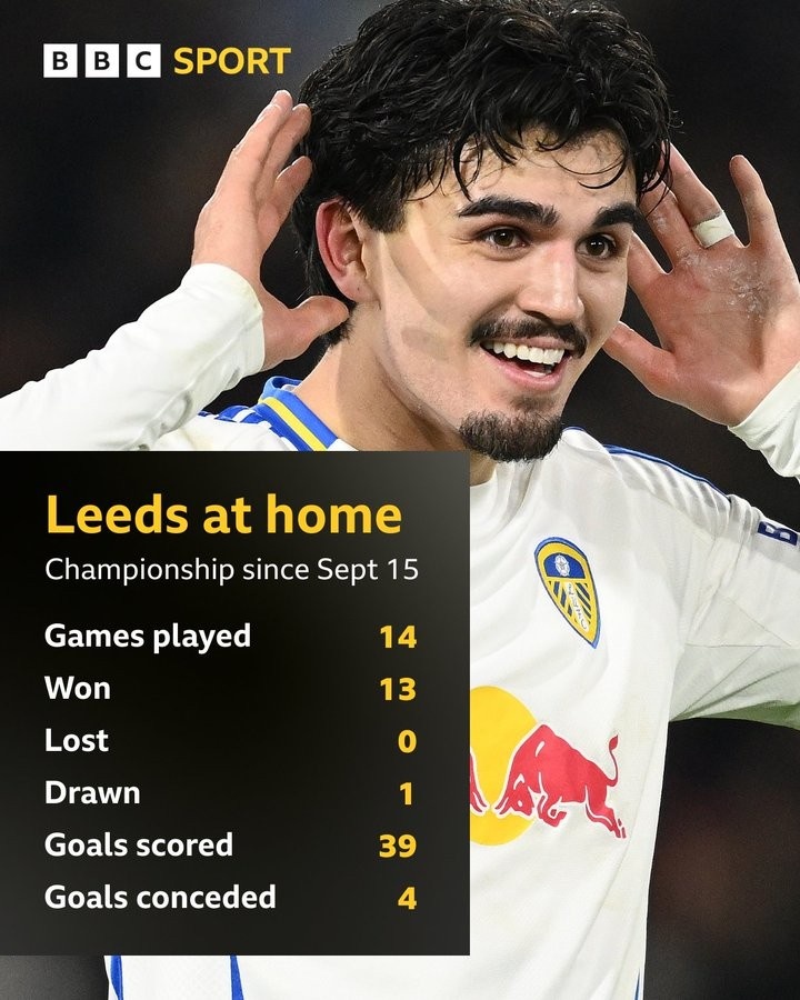 沖超勢頭無(wú)人能擋!利茲聯(lián)近14個(gè)英冠主場(chǎng)13勝1平,進(jìn)39球僅丟4球