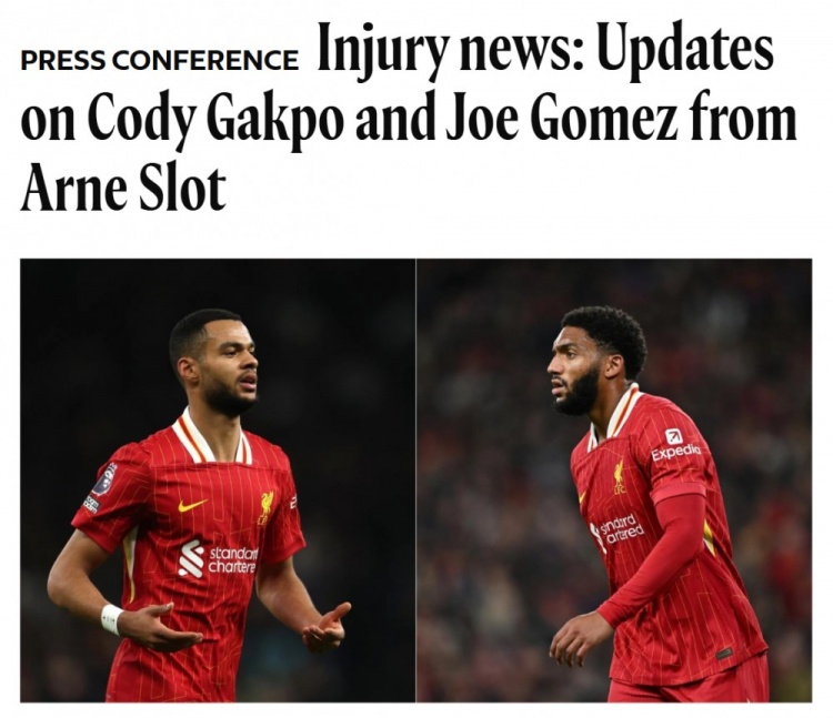 斯洛特:加克波無(wú)法出戰維拉&但接近復出,喬-戈麥斯將傷缺數周