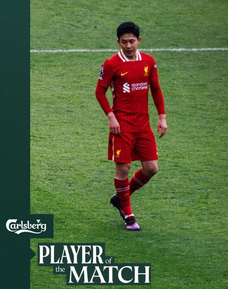 2月17日訊 英超第25輪,利物浦2-1擊敗狼隊,7分優(yōu)勢領(lǐng)跑積分榜。賽后,替補登場(chǎng)的遠藤航當選了紅軍隊內最佳球員。本場(chǎng)比賽,遠藤航在第71分鐘替補登場(chǎng),貢獻1次搶斷,5次對抗成功3次,造犯規2次。最