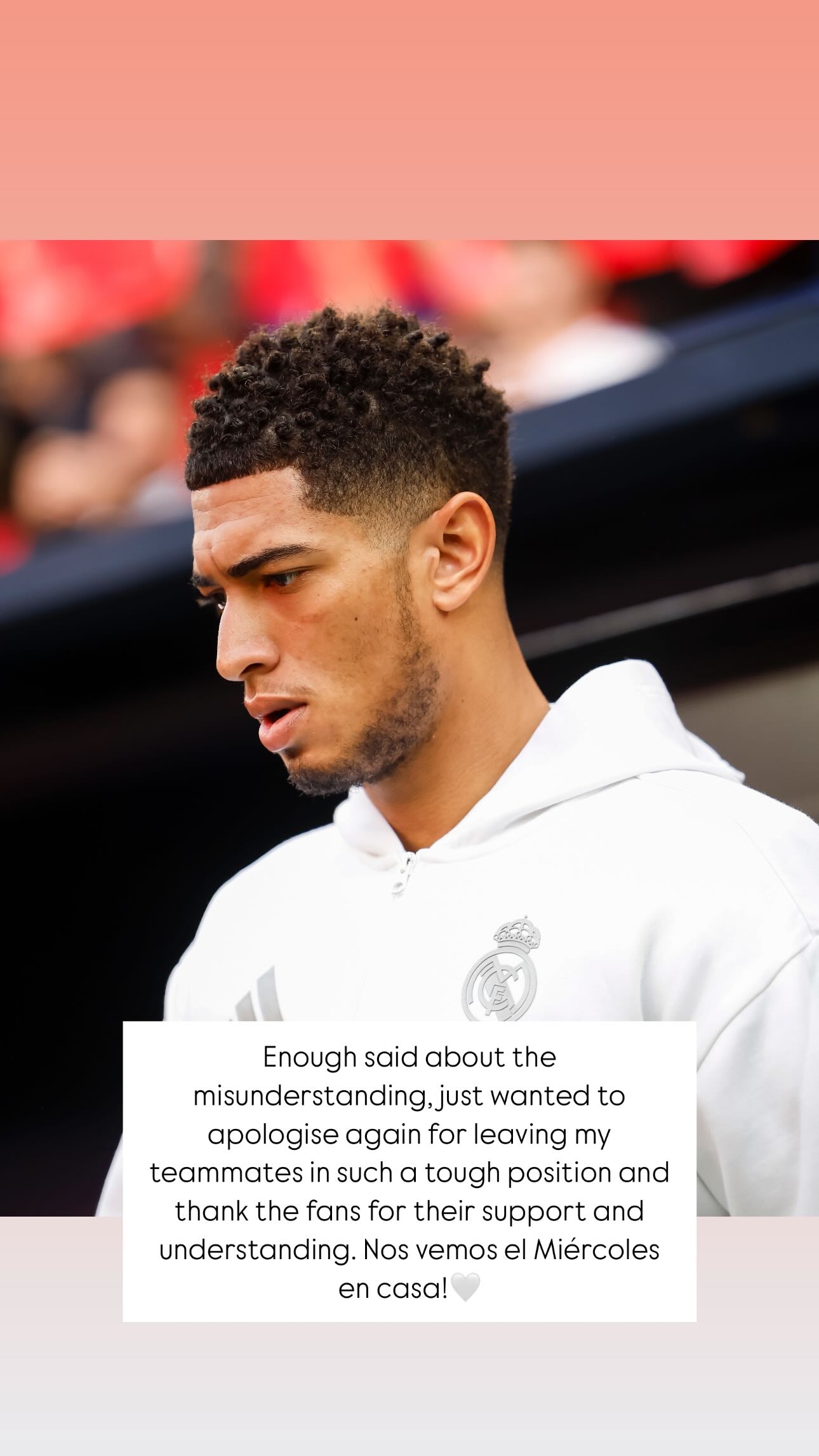 02月16日訊 皇馬中場(chǎng)貝林厄姆更新社媒,談到了自己的紅牌。貝林厄姆表示,就此事說(shuō)的已經(jīng)夠多了,希望向隊友們道歉。貝林厄姆:“關(guān)于這場(chǎng)誤會(huì ),已經(jīng)說(shuō)得夠多了,現在我只想再次為讓隊友們陷入如此艱難的境地而