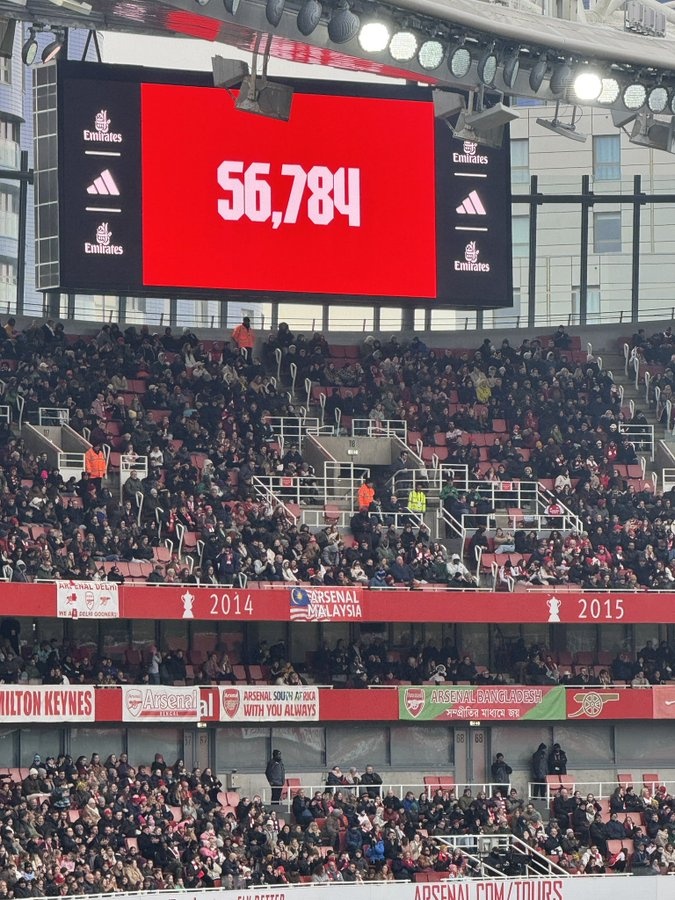 2月16日訊 正在進(jìn)行的女足北倫敦德比比賽,有56784名球迷入場(chǎng)觀(guān)戰。阿森納女足主場(chǎng)迎戰熱刺女足的比賽正在進(jìn)行當中,目前阿森納女足4-0領(lǐng)先對手。
