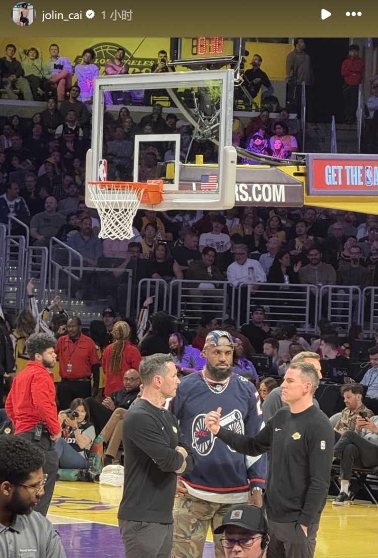 3月20日訊 NBA常規賽,湖人在主場(chǎng)120-108戰勝掘金。賽后,蔡依林在INS曬出了現場(chǎng)觀(guān)戰的照片。