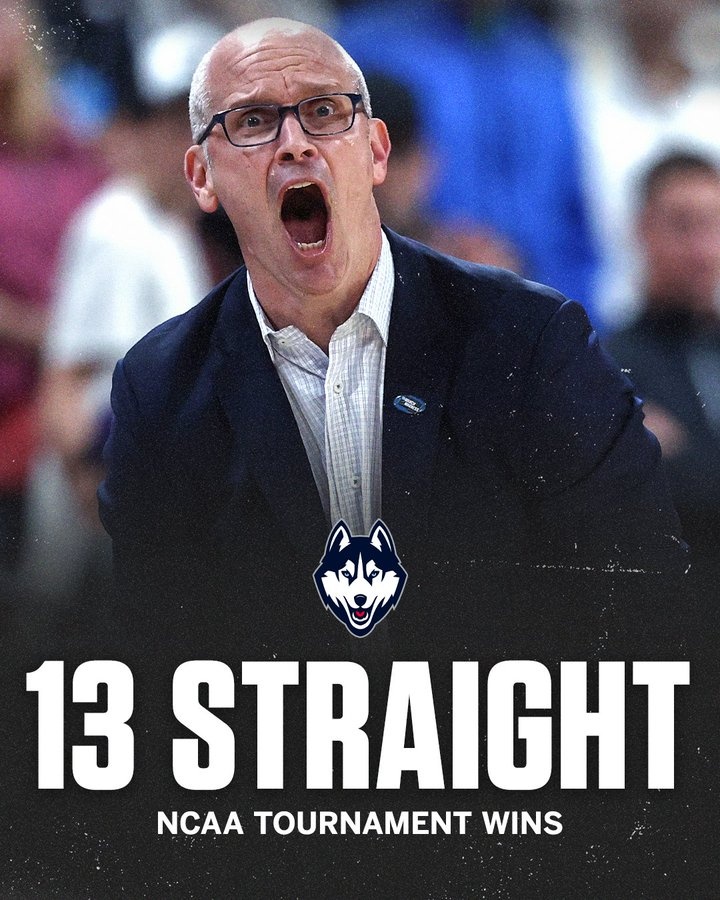 3月22日訊 在今天結束的NCAA瘋三比賽中,康涅狄格大學(xué)67-59戰勝俄克拉荷馬大學(xué)。至此,康涅狄格大學(xué)主帥丹-赫爾利已經(jīng)率球隊在瘋狂三月的比賽中取得13連勝,追平了杜克大學(xué)在1991-93年所創(chuàng )的