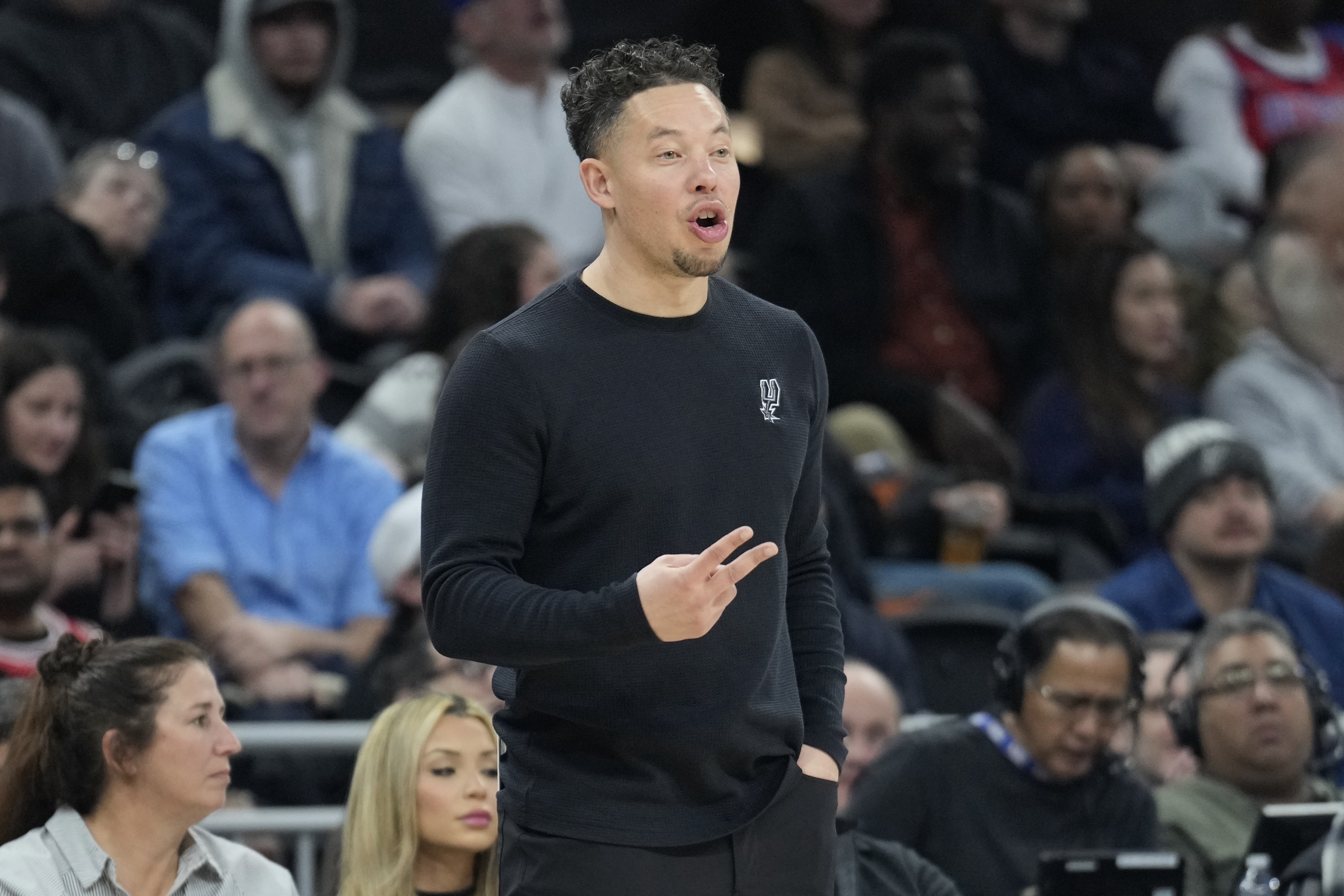 3月22日訊 NBA常規賽,馬刺128-120擊敗76人。賽后,馬刺代理主帥米奇-約翰遜接受了采訪(fǎng)。談及比賽取勝,米奇-約翰遜表示:“我覺(jué)得能看到球隊在第四節做出的回應很不錯,大家重新齊心協(xié)力,為彼此
