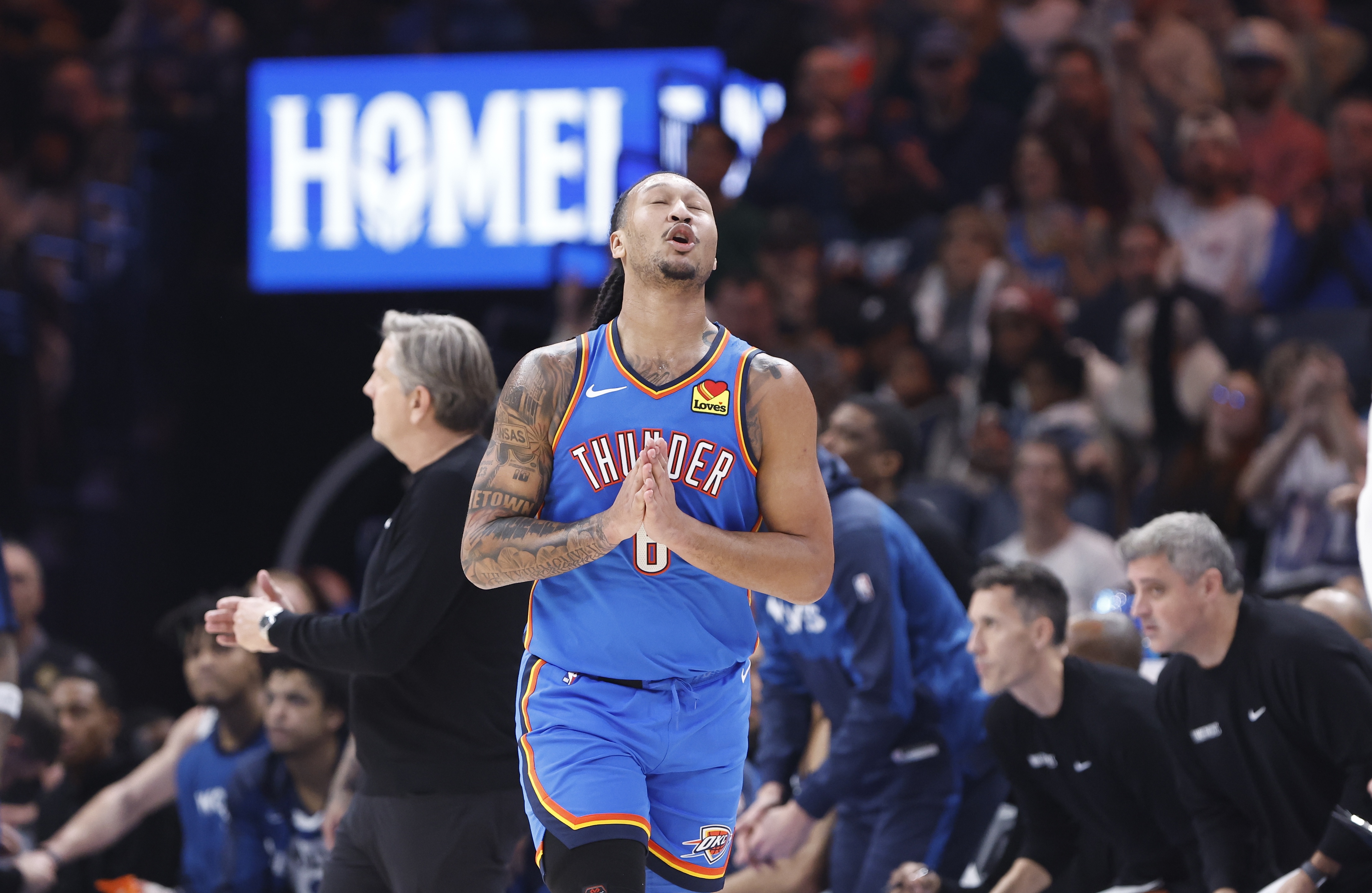 3月20日訊 NBA常規賽,雷霆133-100擊敗76人。賽后,雷霆球員阿隆-維金斯談到了隊友杰林-威廉姆斯在球隊的角色:“他就是那個(gè)在場(chǎng)上場(chǎng)下都有作用的角色。他的性格很有感染力,他每天都給我們帶來(lái)好