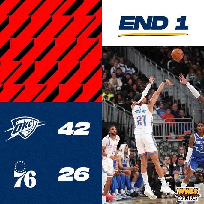 3月20日訊 NBA常規賽,雷霆首節42-26領(lǐng)先76人。本場(chǎng)比賽,雷霆全隊輪休主力但仍火力十足。首節轟下42分創(chuàng )下了球隊賽季首節新高!