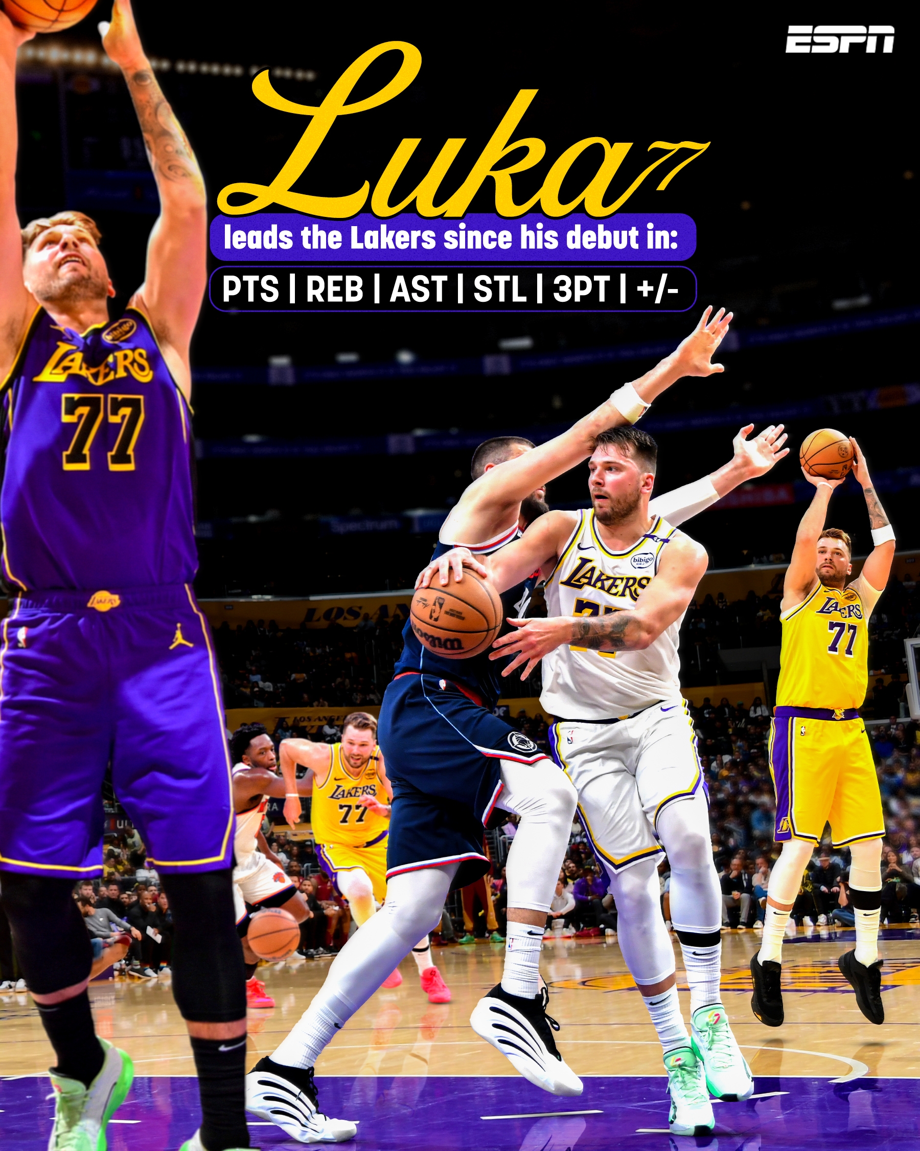 自從2月11日上演湖人首秀以來(lái),東契奇的總得分(363分)、總籃板(123個(gè))、總助攻(113次)、總搶斷(28次)、三分球命中數總數(45個(gè))和累計正負值(+103)都是隊內最多。