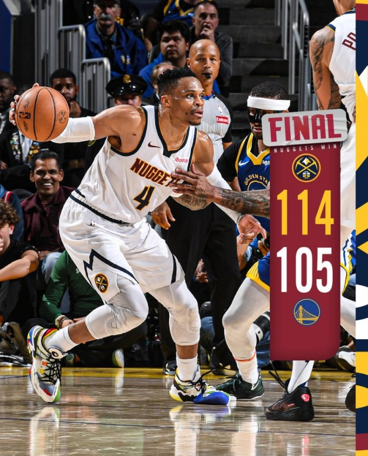 3月18日訊 NBA常規賽,掘金在客場(chǎng)以114-105擊敗勇士。此役,威少出戰42分鐘,17中5,三分9中2砍下12分11籃板(3前場(chǎng)籃板)16助攻的三雙,外加3搶斷2蓋帽,出現7次失誤,正負值+5。