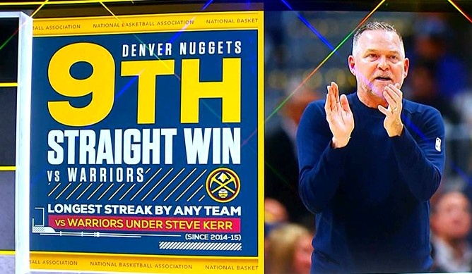 勇士面對掘金慘遭9連敗 創(chuàng )科爾執教時(shí)期面對同一對手最長(cháng)連敗