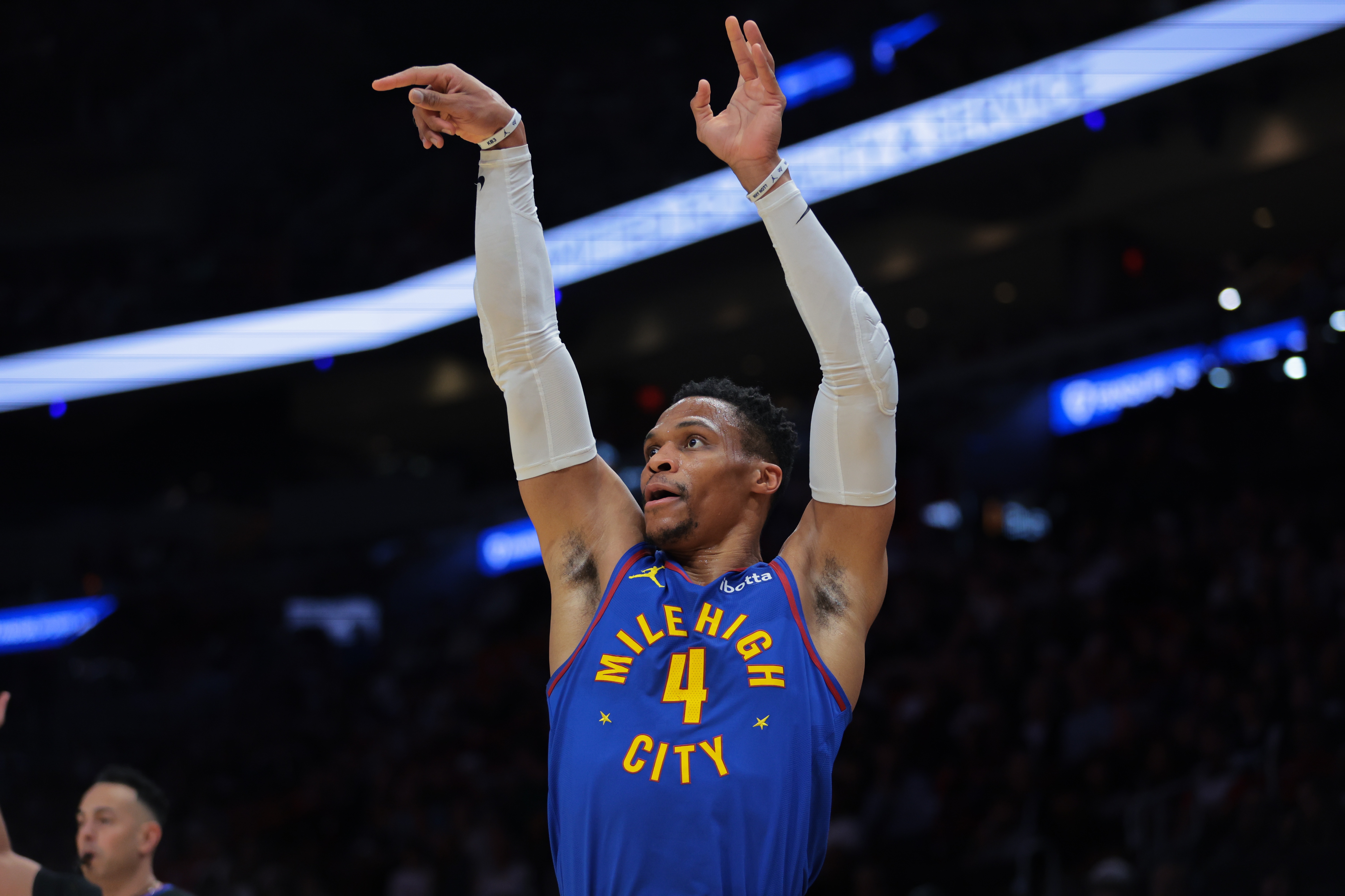 3月15日訊 NBA常規賽今天繼續進(jìn)行,掘金在主場(chǎng)迎戰湖人。首節結束時(shí),掘金32比40落后。威少此役替補出戰,首節表現出色,出戰5分49秒,4投3中,三分1投1中,拿到7分2助攻,0失誤。