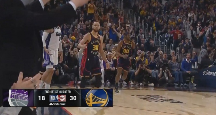 箭如雨下!勇士首節7記三分球30-18領(lǐng)先國王12分