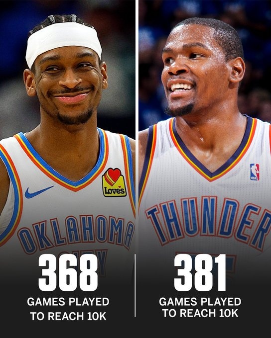 亞歷山大歷時(shí)368場(chǎng)比賽解鎖雷霆生涯1萬(wàn)分 超越KD成隊史最快