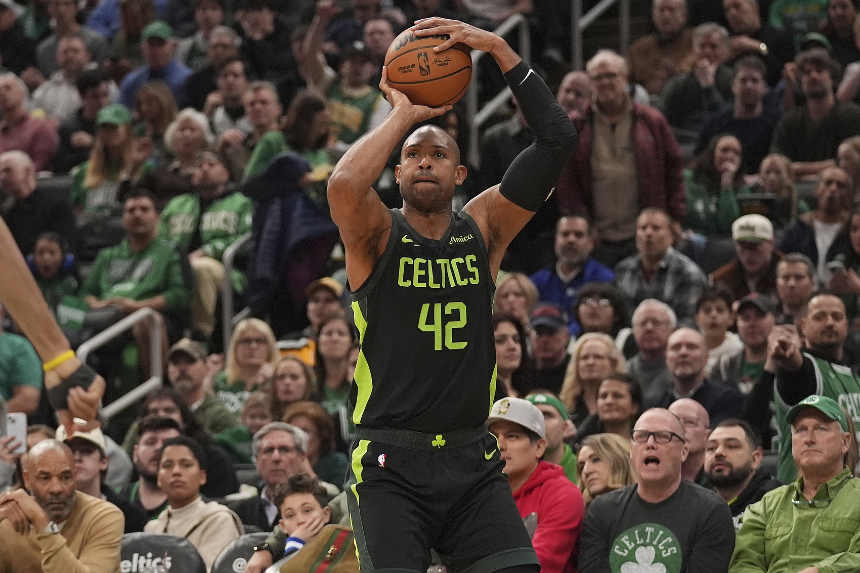 3月13日訊 NBA常規賽,凱爾特人半場(chǎng)60-63落后于雷霆。綠軍38歲老將霍福德在上半場(chǎng)發(fā)揮出色,他打了15分24秒,8投4中(三分7中4),拿下12分4籃板(2個(gè)前場(chǎng)板)3助攻1搶斷1蓋帽,出現1