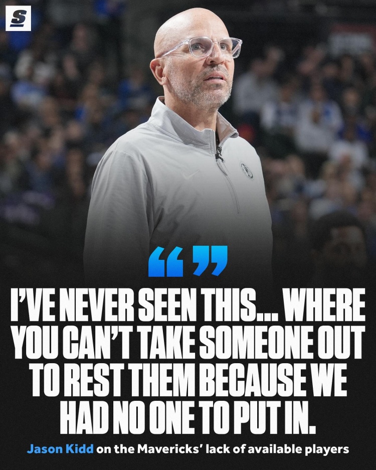 3月10日訊 今日獨行俠主場(chǎng)116-125不敵太陽(yáng),基德賽后接受了媒體采訪(fǎng)。談到球隊遭遇大面積傷病潮,基德無(wú)奈表示:“我從來(lái)沒(méi)有見(jiàn)過(guò)這種情況,從來(lái)沒(méi)有經(jīng)歷過(guò)這樣的比賽,因為我們沒(méi)有人可以上場(chǎng),所以不能