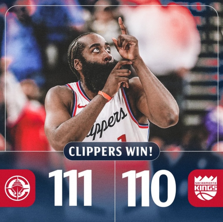 準三雙+兩個(gè)關(guān)鍵拋投!快船官方贏(yíng)球海報封面給到了哈登