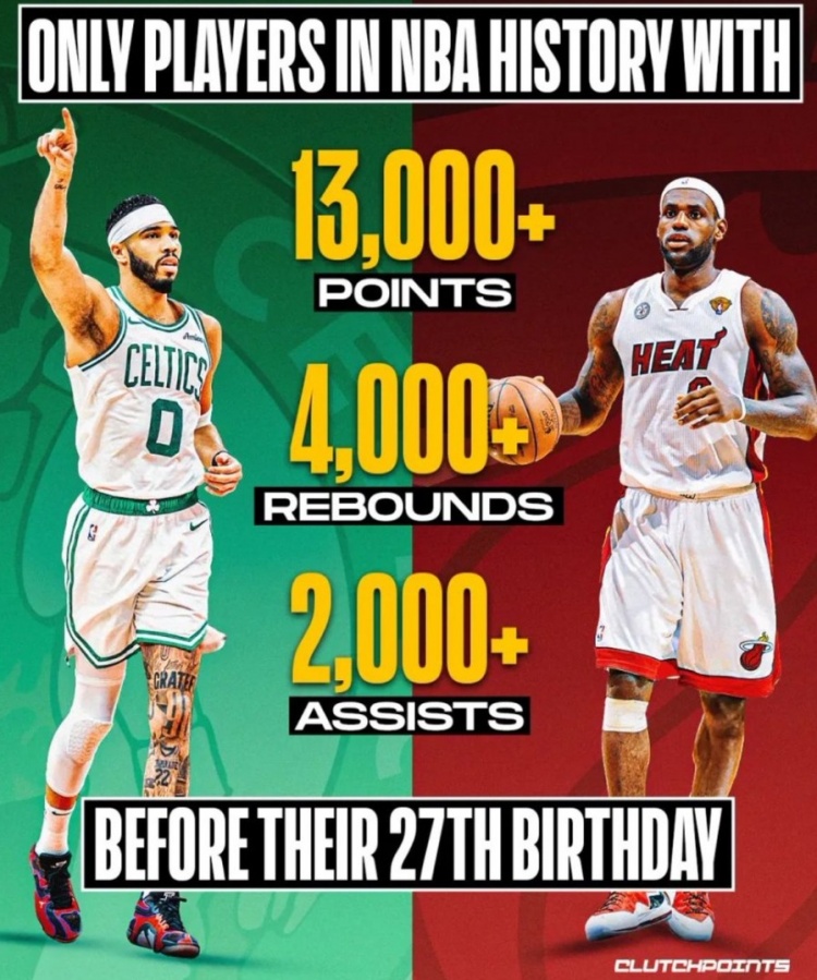 塔圖姆27歲前至少13000分4000板2000助 歷史唯二&比肩詹姆斯