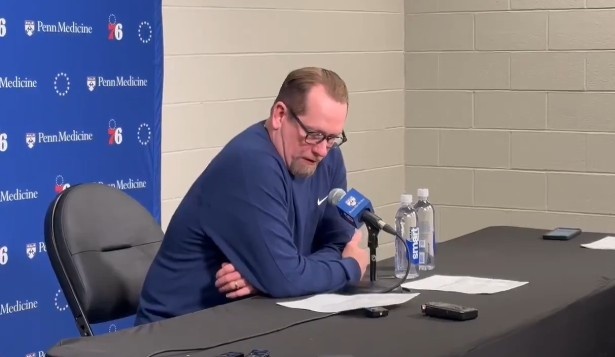 2月25日訊 今日NBA常規賽,76人主場(chǎng)110比142不敵公牛,遭遇8連敗。賽后76人主帥納斯接受了媒體的采訪(fǎng)。在賽后采訪(fǎng)中,納斯情緒不高并一直搖頭,多次強調球隊需要更加職業(yè)。談到球隊今天的表現,納