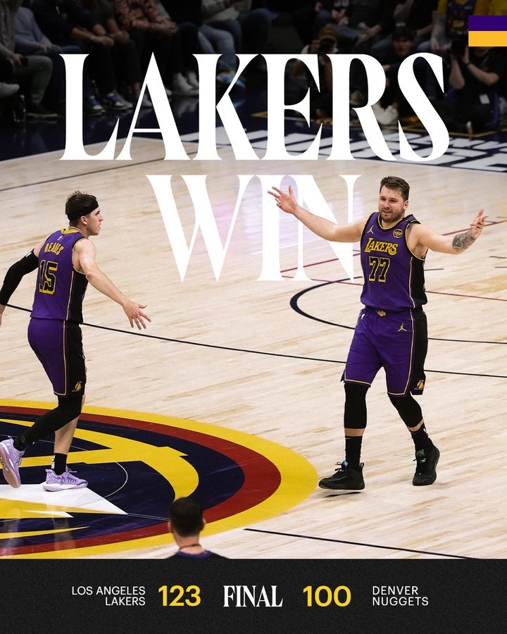閃耀丹佛!湖人官方曬贏(yíng)球海報:東契奇和里夫斯成為封面人物