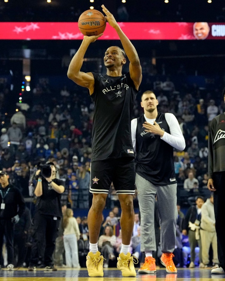 2月16日訊 NBA2025年全明星技巧挑戰賽在大通中心進(jìn)行,米切爾和莫布里組成的騎士隊最終奪冠。賽后,米切爾在接受采訪(fǎng)時(shí)被問(wèn)到這座獎杯會(huì )放在哪里時(shí),米切爾打趣道:“可能要挨著(zhù)扣籃大賽冠軍獎杯放。我現