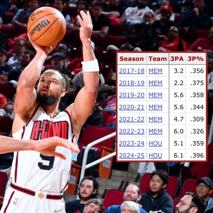 火記:狄龍本賽季場(chǎng)均三分出手6.1次&命中率39.6% 皆創(chuàng )生涯新高