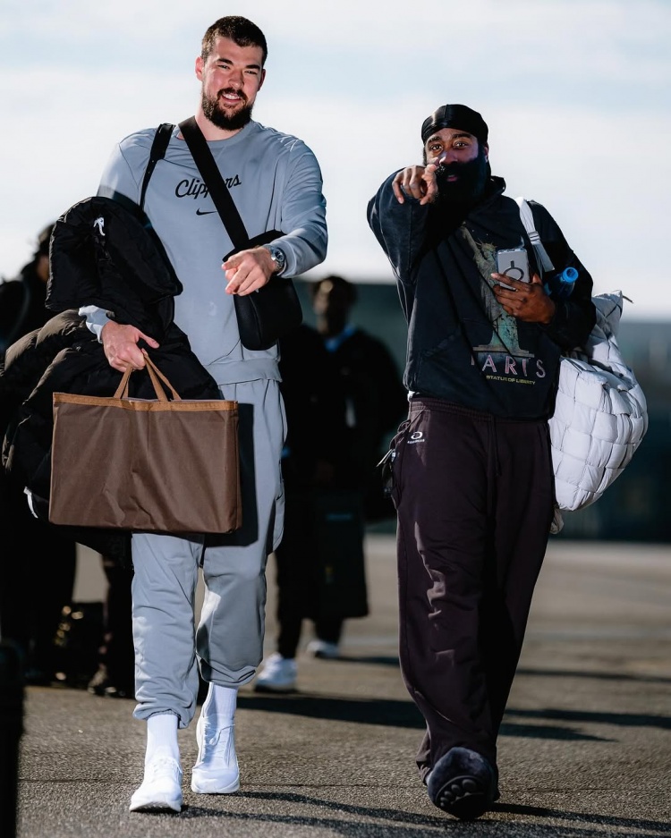 快船眾將登機??哈登神仙指路 萊昂納德衛衣+外套裹得嚴實(shí)