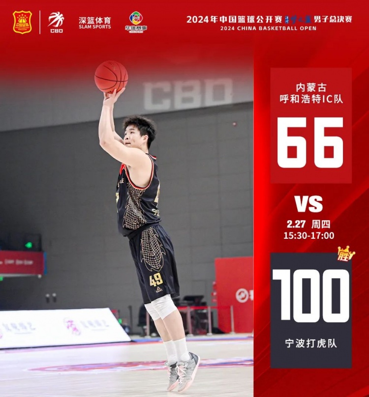 上半場(chǎng),寧波打虎一開(kāi)場(chǎng)就展現了超強的得分能力,以16-5領(lǐng)先。內蒙古IC通過(guò)外線(xiàn)連續三分,不斷追分。但在快攻的情況下,內蒙古IC失誤增多,且命中率下降。半場(chǎng)結束,寧波打虎50-26領(lǐng)先內蒙古IC。下半場(chǎng),兩隊之間的實(shí)力差距愈發(fā)明顯,寧波打虎最終以100-66戰勝內蒙古IC。