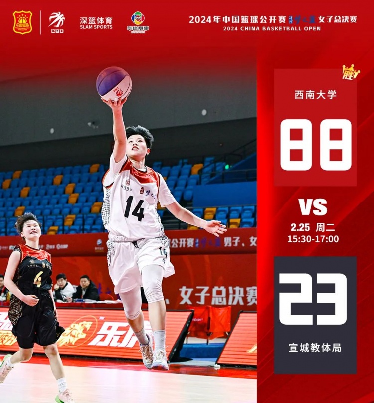 第二場(chǎng)由西南大學(xué)對陣宣城教體局,兩隊之間還是存在一定的實(shí)力差距。上半場(chǎng),西南大學(xué)開(kāi)場(chǎng)打出了一波16-0的得分潮,奠定領(lǐng)先優(yōu)勢。宣城教體局面對西南大學(xué)的防守,很難取得有效得分手段。半場(chǎng)結束,西南大學(xué)47-15領(lǐng)先宣城教體局。易邊再戰,西南大學(xué)進(jìn)攻依舊表現強勢,17號馮藝、7號應茵、10號李汶璐頻頻出手得分,最終,西南大學(xué)88-23戰勝宣城教體局。