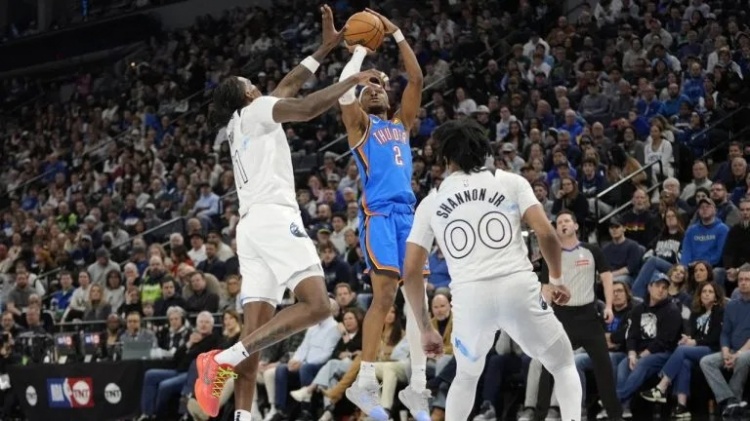 狼的策略很明確。沒(méi)有戈貝爾,狼擺出了一套五外陣容,外有華子開(kāi)干,內有里德大吃小,三人得分上20,五人得分上雙。防守則在聯(lián)防與夾擊誤持球人之間來(lái)回切換,擾亂SGA從三分線(xiàn)外持球發(fā)起的節奏,考驗雷霆的轉移球和外線(xiàn)回應。攻防兩端,狼都打到了雷霆的痛點(diǎn)。