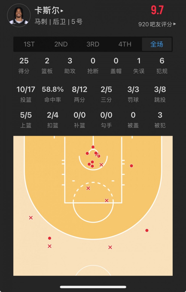 馬刺4號秀 斯蒂芬-卡斯爾 登場(chǎng)26.4分鐘