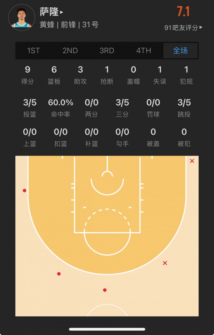 黃蜂6號秀 提賈尼-薩隆 登場(chǎng)17.6分鐘