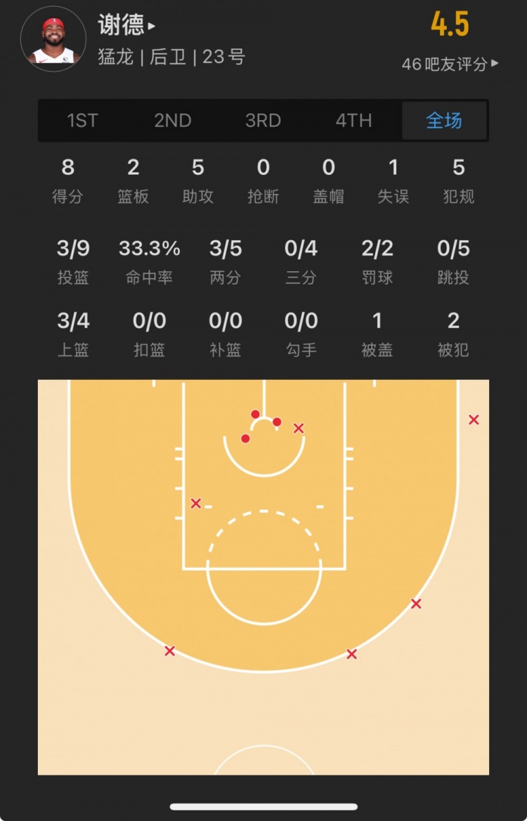 猛龍45號秀 賈馬爾-謝德 登場(chǎng)26.0分鐘