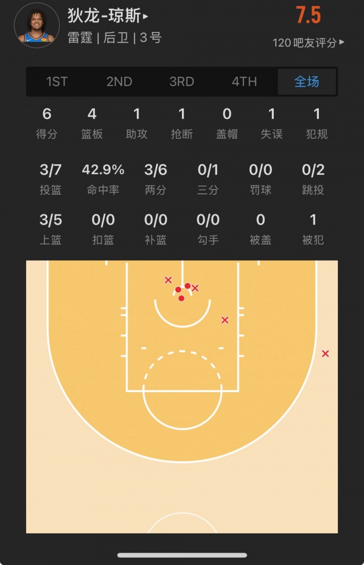雷霆26號秀 狄龍-瓊斯 登場(chǎng)25.1分鐘